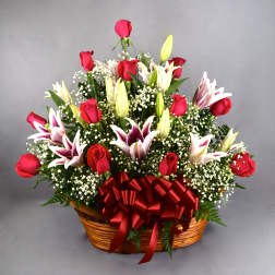 Price: $179.99Big Red Arrangement Basket- Premium Red Roses w/Stargazers